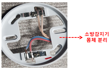 소방감지기 몸체는 천장에 볼트로 고정되어 있습니다. 볼트를 풀고 분리를 해줍니다.